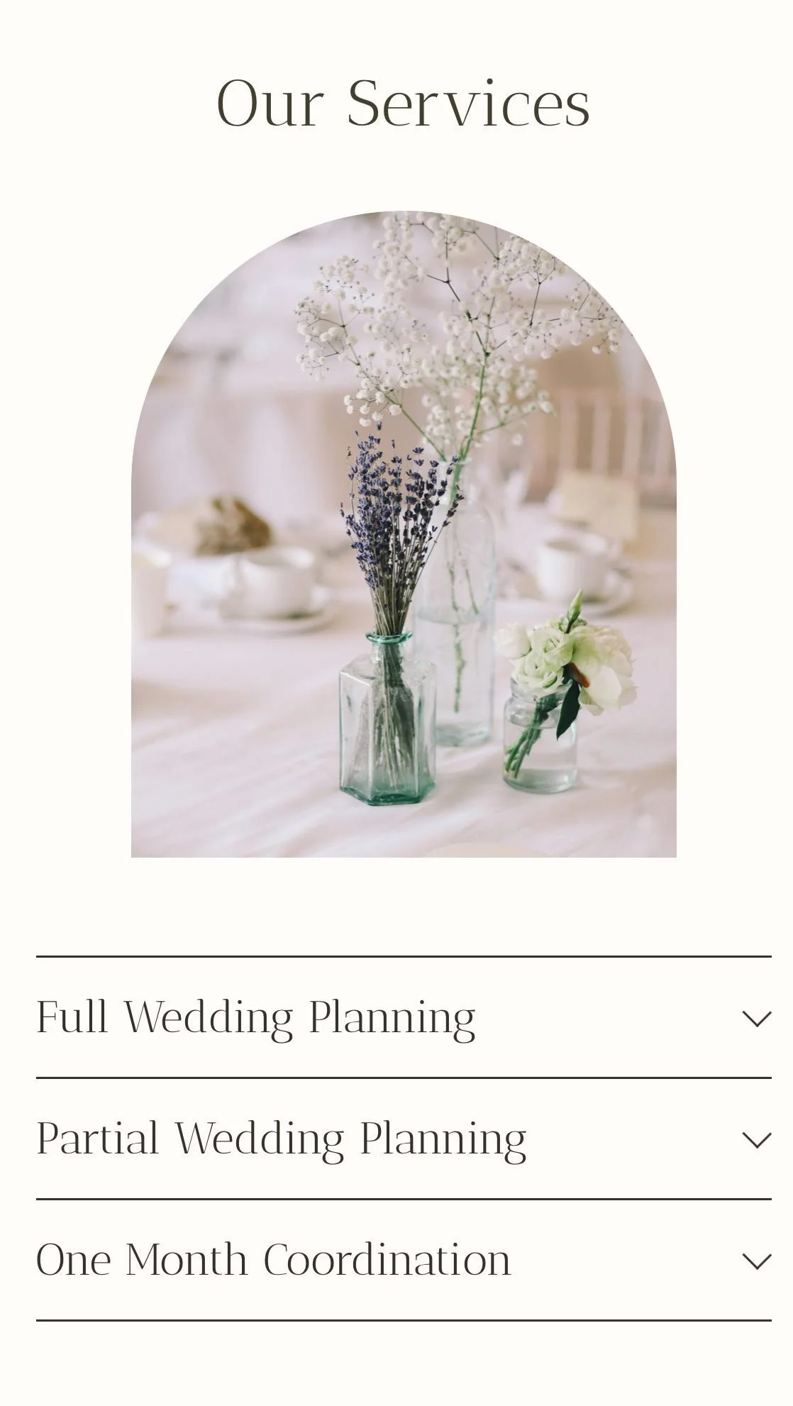 Let us transform your vision into a masterpiece with our Full Wedding Planning package. We're your partners from concept to completion, ensuring every element comes together seamlessly to create an unforgettable experience.
